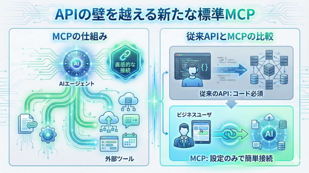 AI活用は、コストのかかるAPI開発から、プラグイン感覚のMCP連携へとシフトしています。