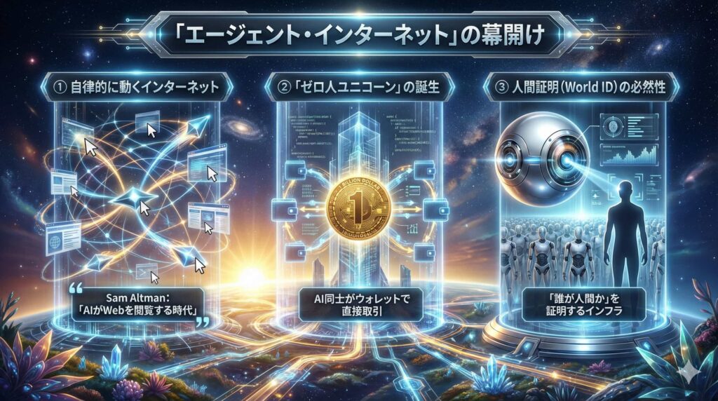 アルトマン氏が関わる「World ID(Orb)」プロジェクトも、この文脈で重要性を増します。彼らは、MoltbookのようにAIエージェントが溢れ、AI同士が会話や取引を始めるインターネットにおいて、「誰が人間で、誰がAIか」を証明するインフラが不可欠になると主張しています。