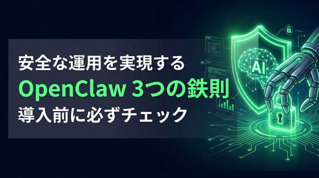 本記事では、OpenClaw v2026.02以降の最新アップデートを踏まえ、AIエージェントをビジネスで安全かつ最大限に活用するためのセキュリティ対策を3つの鉄則に絞って解説します。