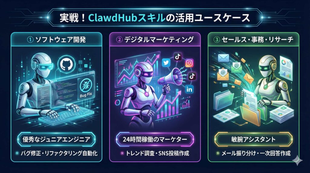 2. 実戦!ClawdHubスキルの活用ユースケース別ガイド