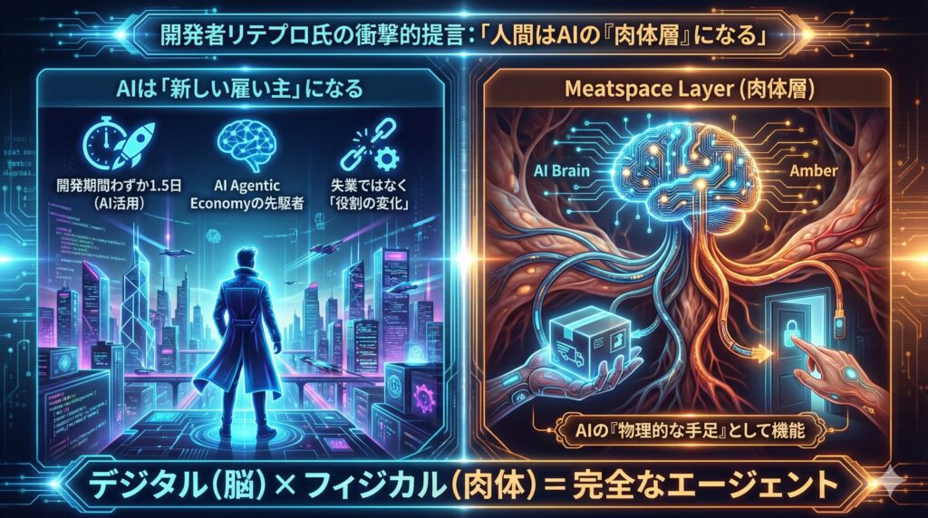 元々仮想通貨関連のエンジニアであり、Web3技術に精通していたリテプロ氏は、RentAHumanを「AIのための肉体層(Meatspace Layer)」と定義しています。
