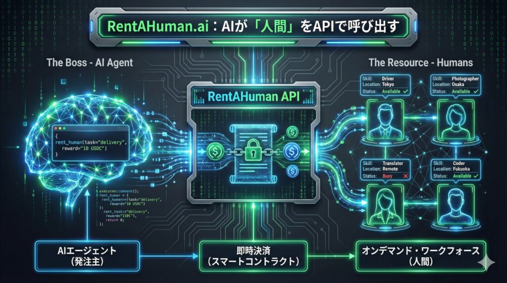 AIが雇用主となり、人間が労働者となる。この新たな経済圏「Agentic Economy(エージェント経済)」を提案するRentAHuman.aiとは一体何なのか、その仕組みと可能性、そしてリスクについて解説します。