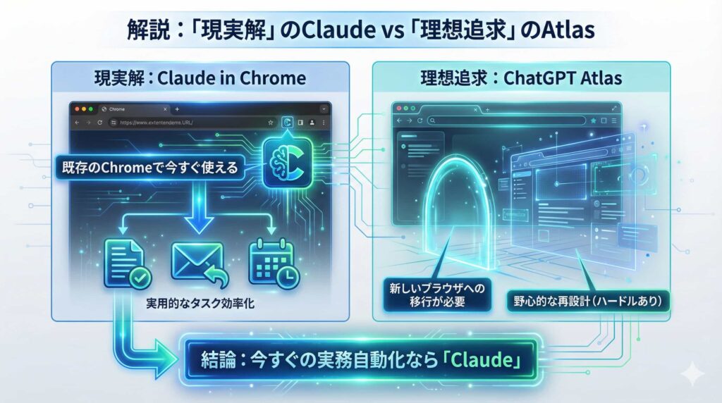 4. 競合比較:「Claude in Chrome」vs「ChatGPT Atlas」