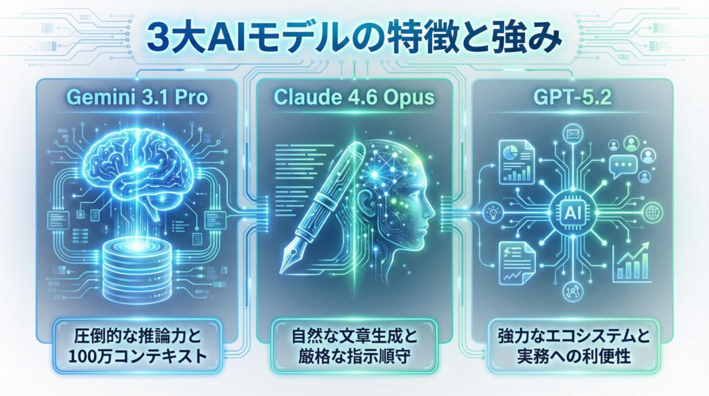 結局どのAIが最強?Gemini 3.1 Pro・Claude 4.6・GPT-5.2を用途別に徹底解説