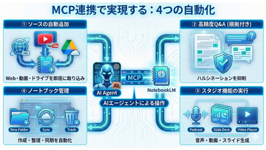 2. MCP連携で何ができる?NotebookLM操作の「できること」リスト