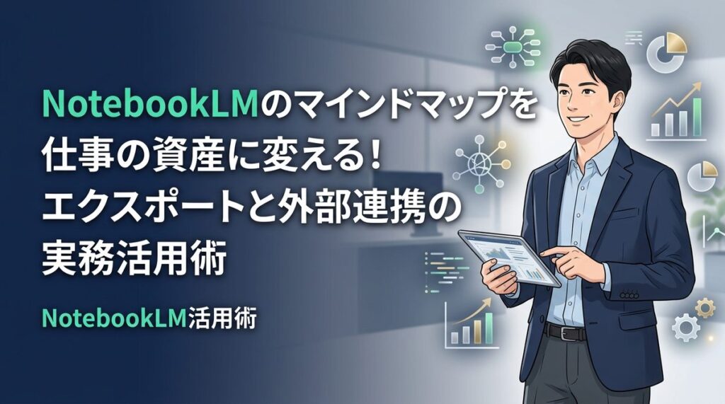 本記事では、NotebookLMからデータを抽出し、マインドマップ作成ツールやスライド作成ソフトへ移行する具体的なワークフローと、AIの出力を「仕事の資産」に変える構造化プロンプトを解説します。