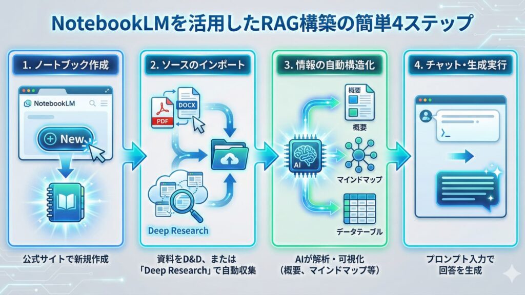 3. NotebookLMを活用したRAG構築の簡単4ステップ