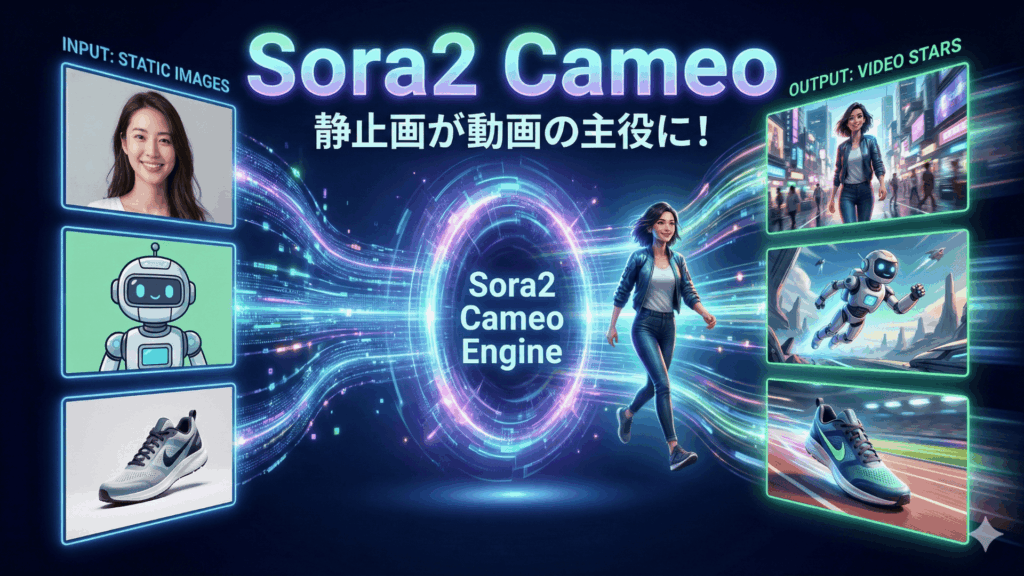 Sora2の「カメオ」機能は、単なる「顔の入れ替え」ではありません。それは、あらゆる静止画のアセットを、動的な動画のアセットへと変換する魔法のコンバーターです。