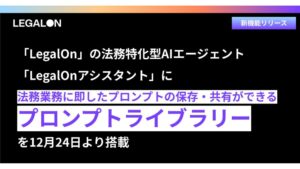 2025年12月17日、株式会社LegalOn Technologiesは、同社の法務特化型AIエージェント「LegalOnアシスタント」の新機能として、「プロンプトライブラリー」を12月24日より提供開始すると発表しました。