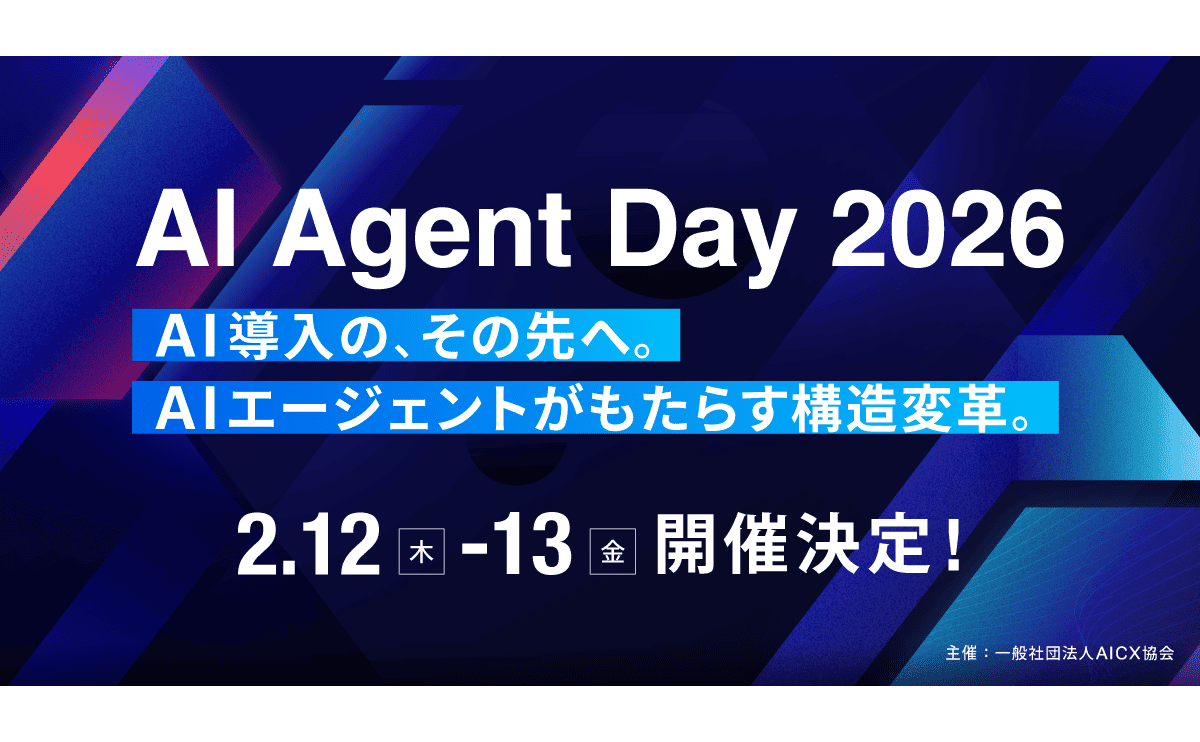 一般社団法人AICX協会は、AIエージェントに特化した国内最大規模のオンラインカンファレンス「AI Agent Day 2026」の開催を発表しました。