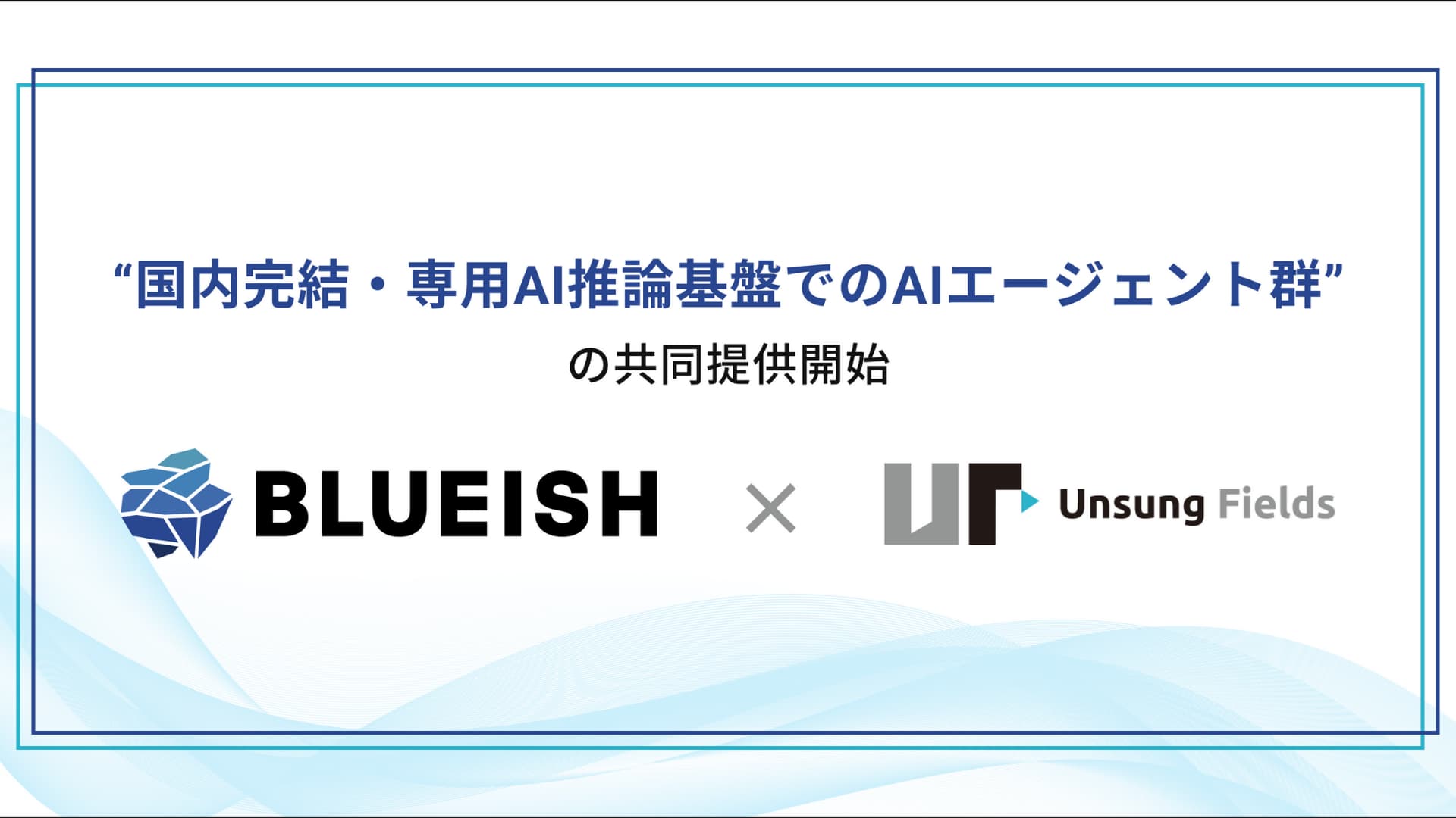 2025年12月12日、株式会社BLUEISHと株式会社Unsung Fieldsは業務提携を発表し、国内データセンター上の専用AI推論基盤で動作する「業務特化型AIエージェント群」の共同提供を開始しました。