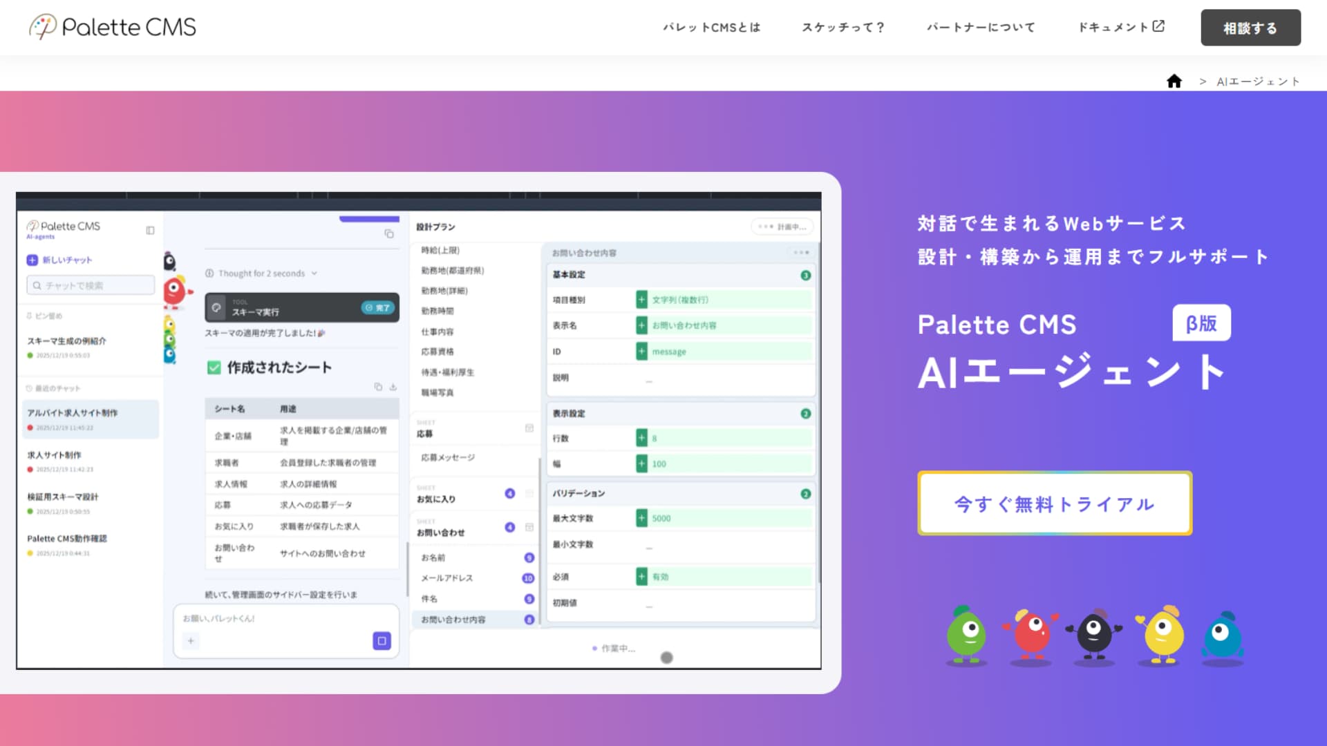 2025年12月19日、株式会社リーフワークスは、同社のWebシステム構築プラットフォームにおいて、対話型で構築・運用を支援する新機能「Palette CMS AIエージェント(β版)」をリリースしました。