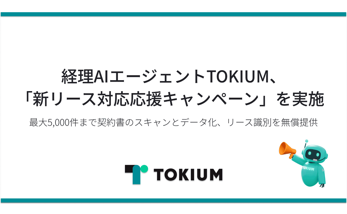 2025年11月6日、経理AIエージェントサービスを提供する株式会社TOKIUMが、「新リース対応応援キャンペーン」の実施を発表しました。